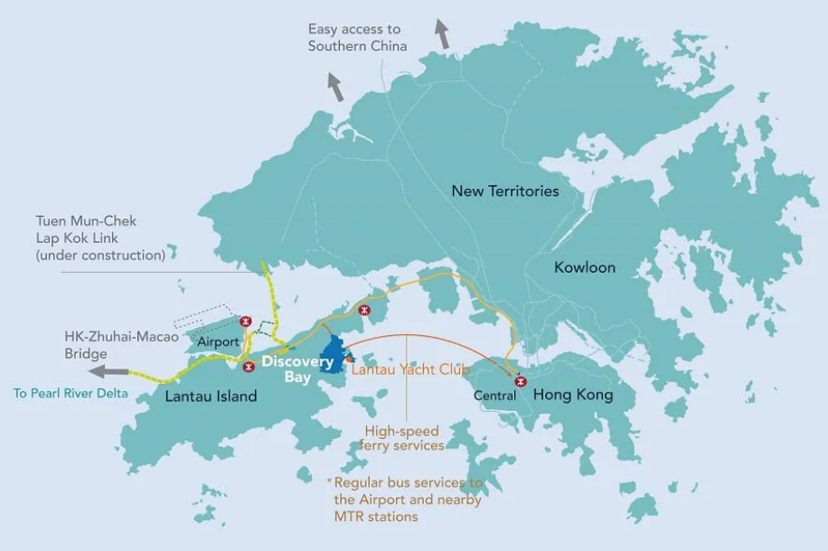 该码头位于大屿山东北部,这也意味着它靠近岛北部的香港国际机场和邻近的港珠澳大桥,该大桥将城市与大湾区连接起来。