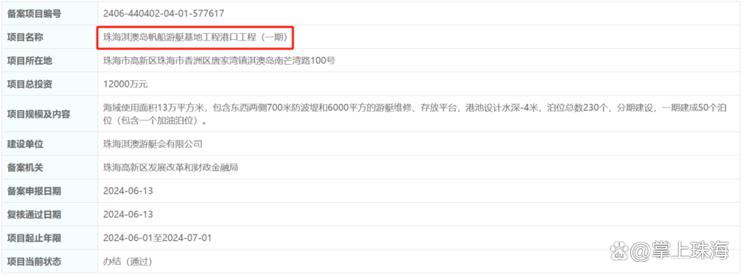 近日,广东省投资项目在线审批监管平台发布了《珠海淇澳岛帆船游艇基地工程港口工程(一期)》的备案信息