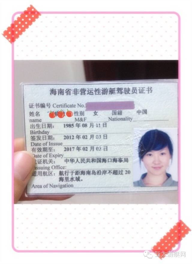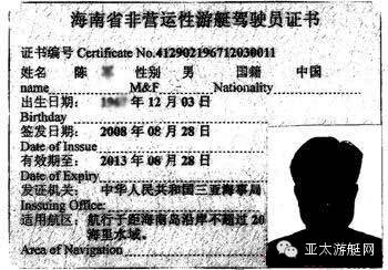 备注:国内各地所考取的游艇驾照虽然样式各异,但都是全国通用(目前不包含港澳台)。全国统一版本的游艇驾驶证即将出炉。